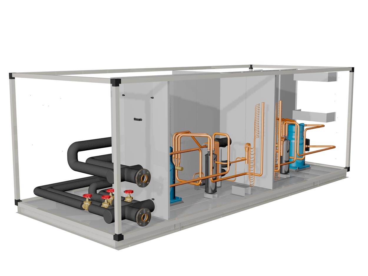 Infografía de enfriadora mod. ETX 230-4 DI. Vista interior trasera derecha.