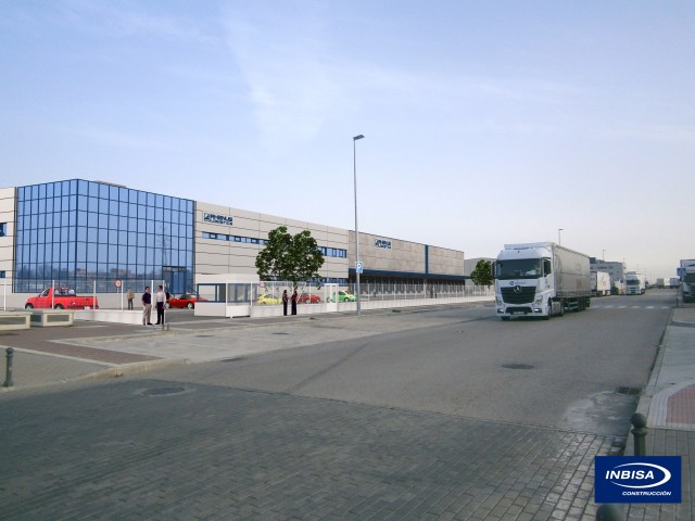 Infografía nave industrial Olano. Vista principal derecha. Acceso muelles