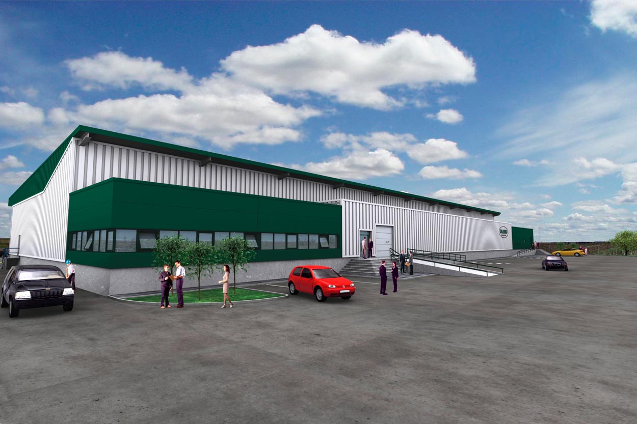 Infografía de nave industrial Equin. Vista izquierda